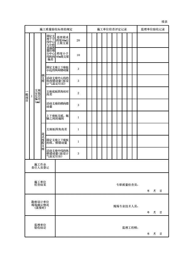 表格名称:G03011305 支座检验批质量验收记录