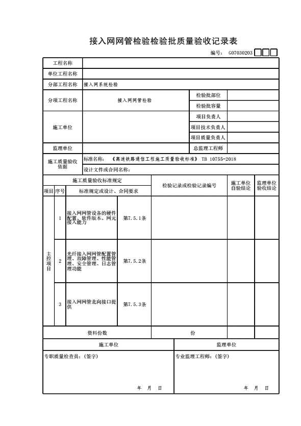 表格名称:G07030203 接入网网管检验检验批质量验收记录表