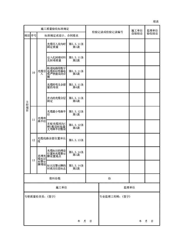 表格名称:G08050202 【光电缆敷设、防护、接续及引入】光缆敷设、防护、接续及引入检验批质量验收记录表(Ⅰ)