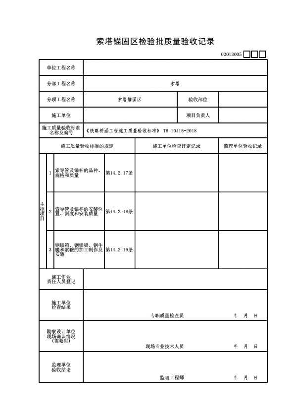 表格名称:03013005 索塔锚固区检验批质量验收记录