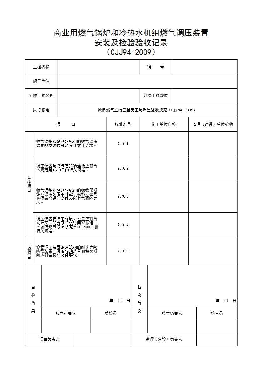 7.3.1 燃气锅炉和冷热水机组的燃气调压装置的安装应符合设计文件要求。