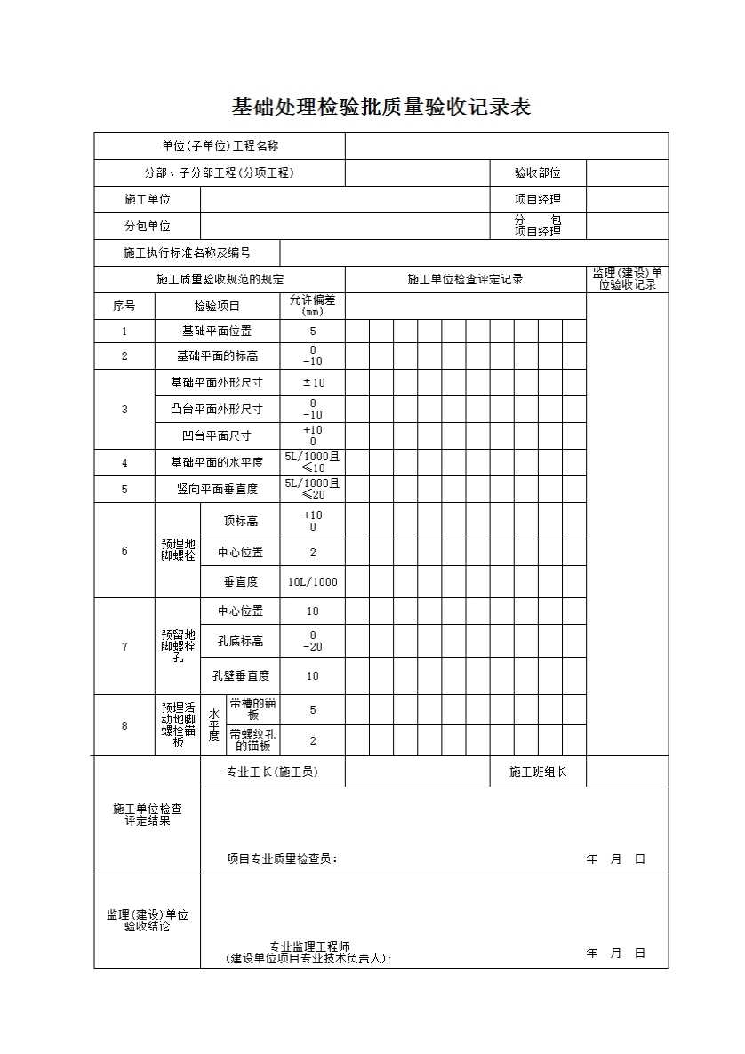 4.1.1 基础的检验项目、 要求和方法应符合表4.1.1 的规定。