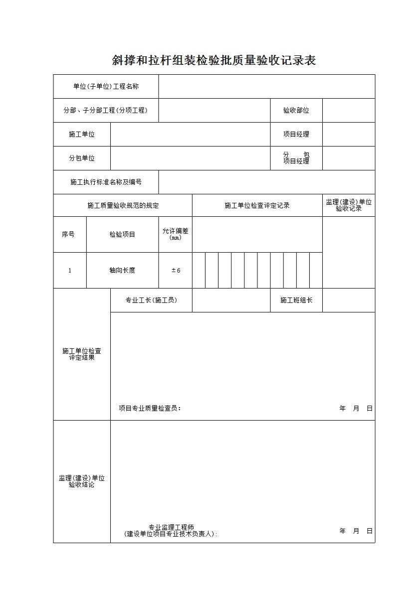 表格名称:斜撑和拉杆组装检验批质量验收记录表