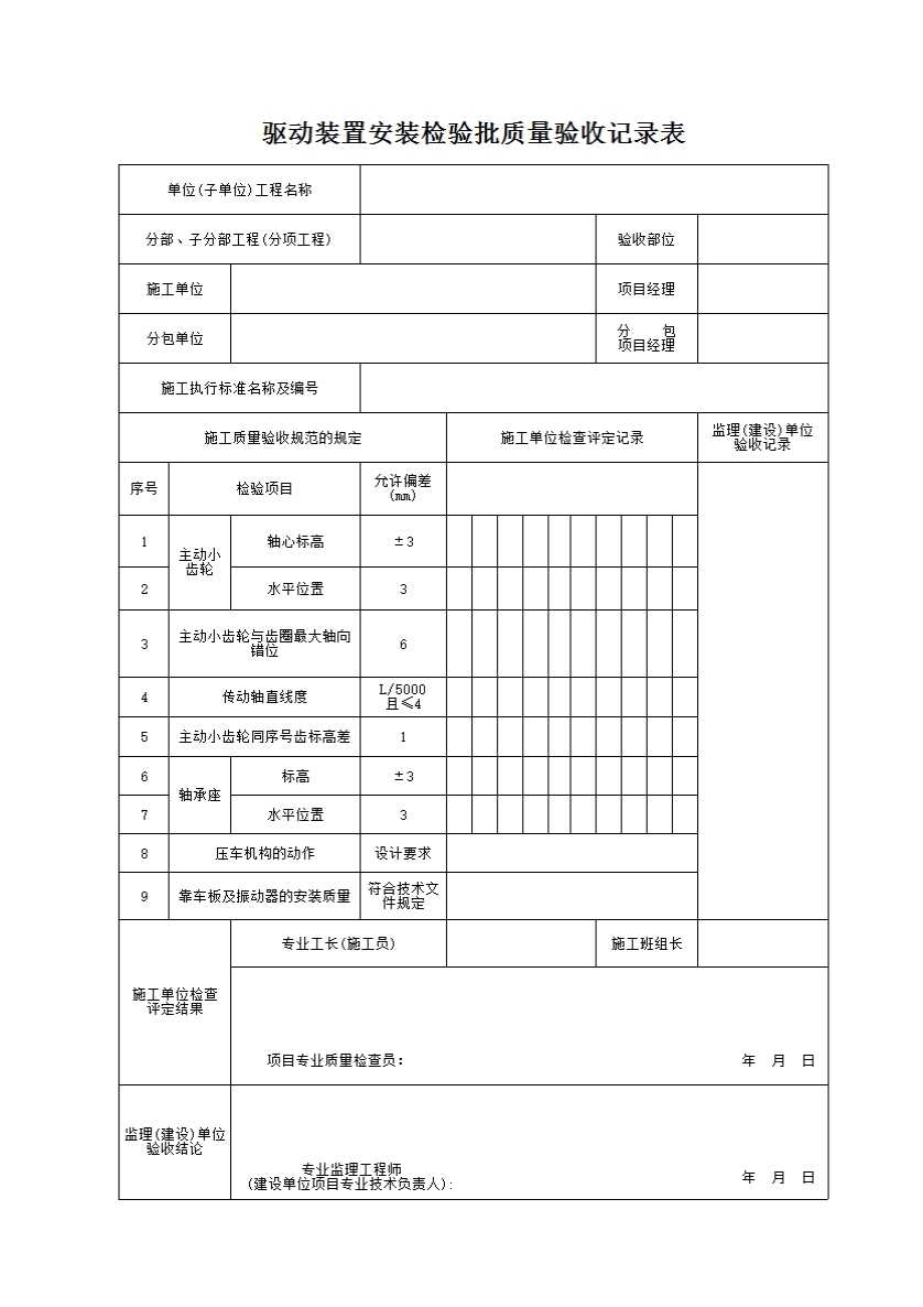 5.16.10 驱动装置安装的检验项目、 要求和方法应符合表5.16.10的规定。