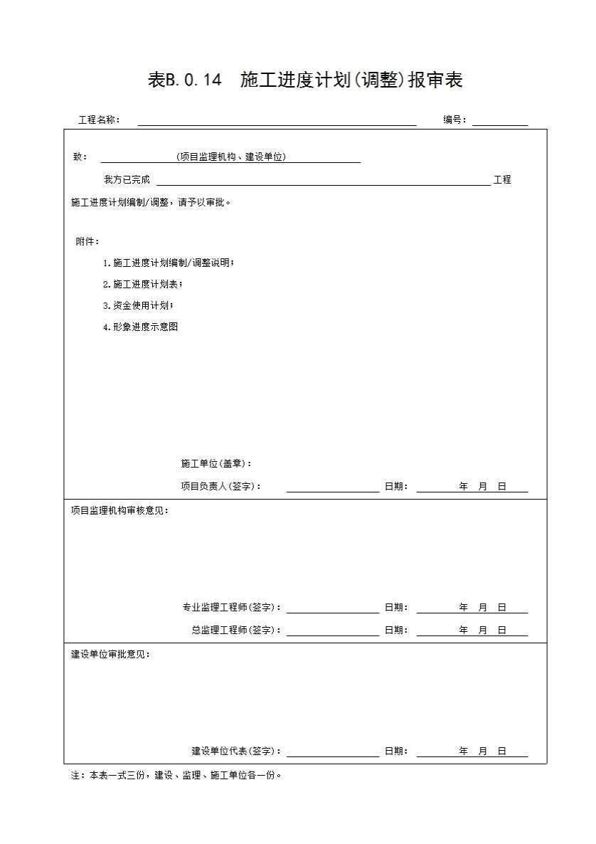 表格名称:表B.0.14 施工进度计划(调整)报审表