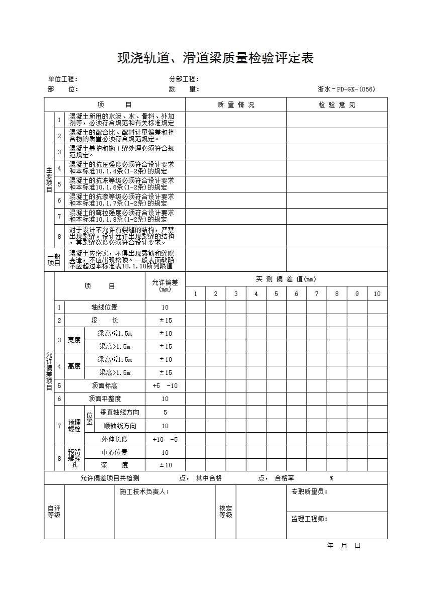 表格名称:056 现浇轨道、滑道梁质量检验评定表