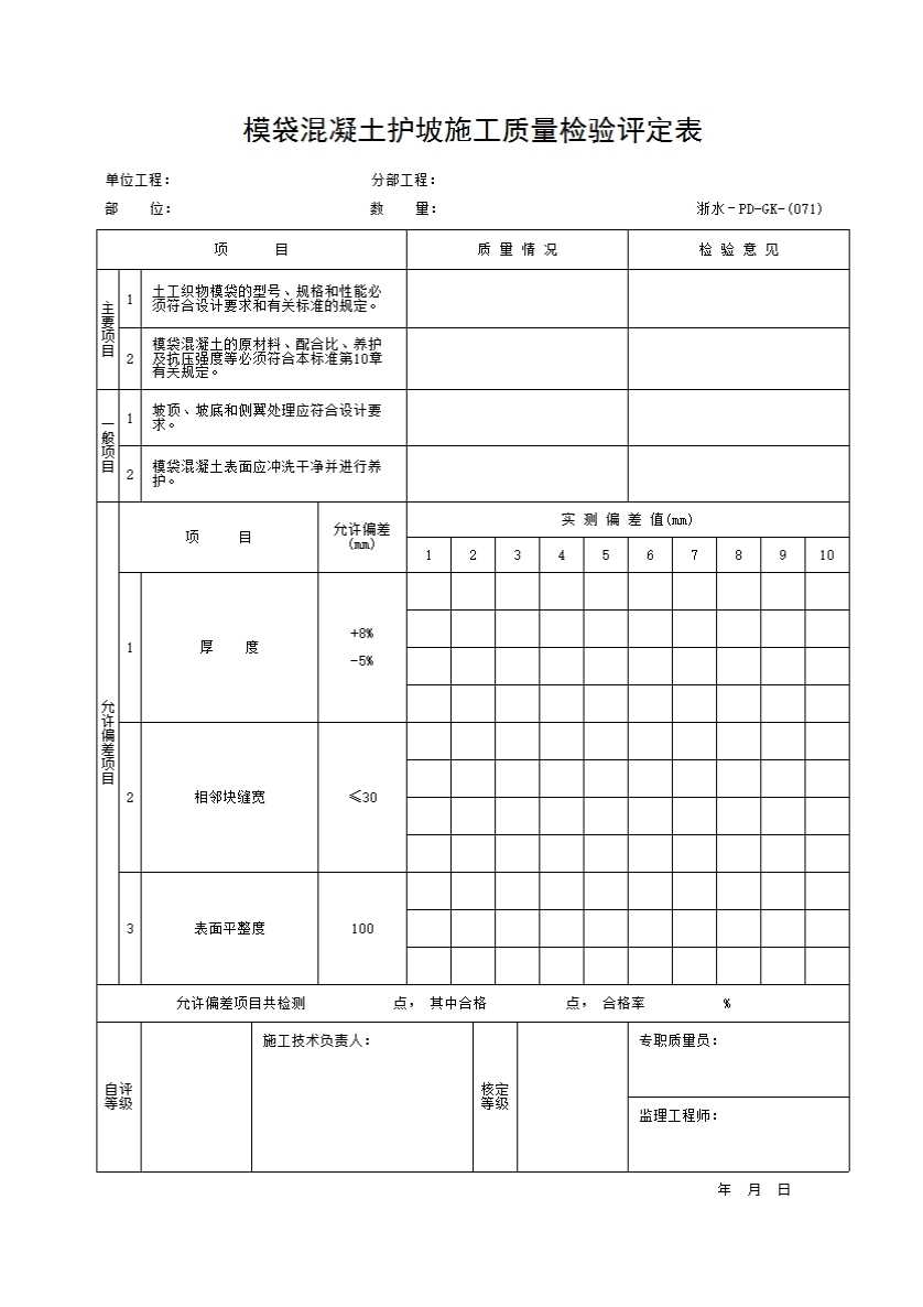 表格名称:071 模袋混凝土护坡施工质量检验评定表