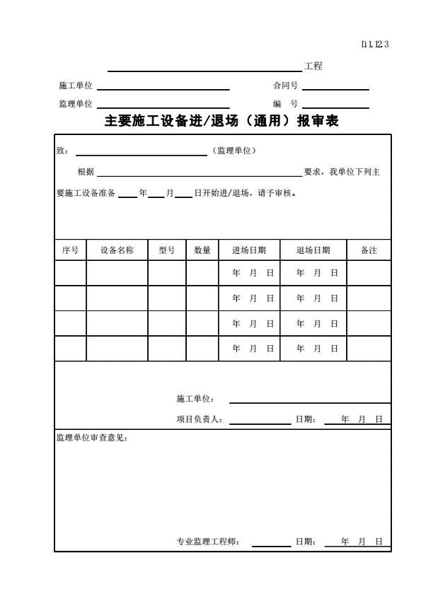 D.1.12.3 主要施工设备进退场(通用)报审表