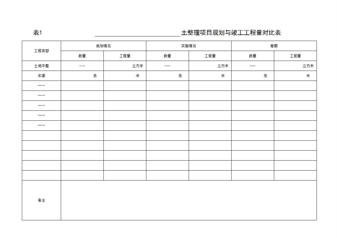 表格名称:表1 ___土整理项目规划与竣工工程量对比表