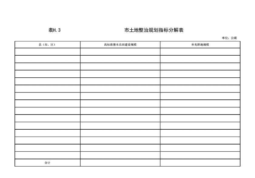 表格名称:表H.3 ××市土地整治规划指标分解表
