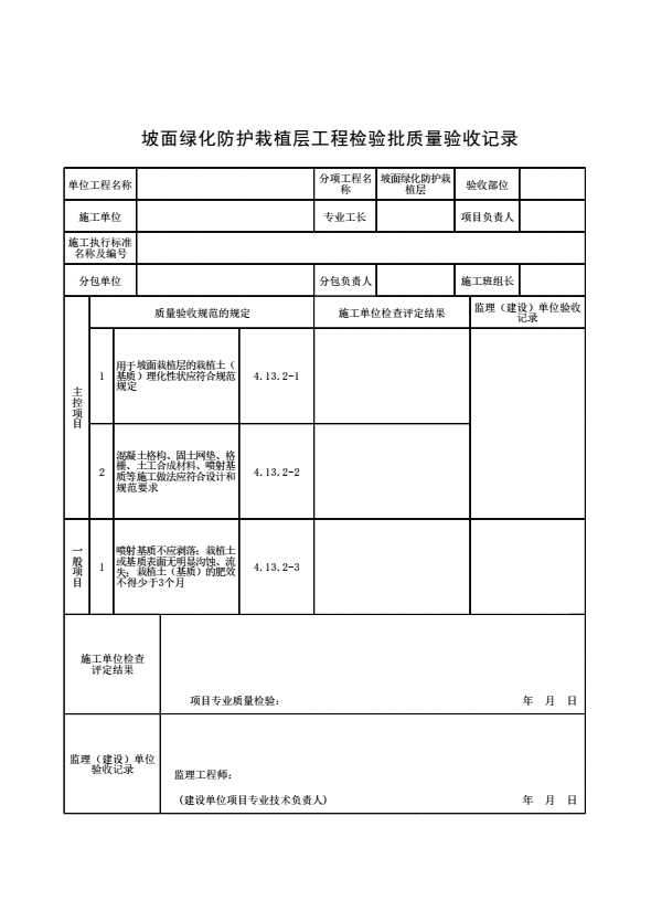 表格名称:坡面绿化防护栽植层工程检验批质量验收记录