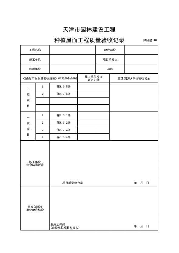 表格名称:天津市园林建设工程种植屋面工程质量验收记录