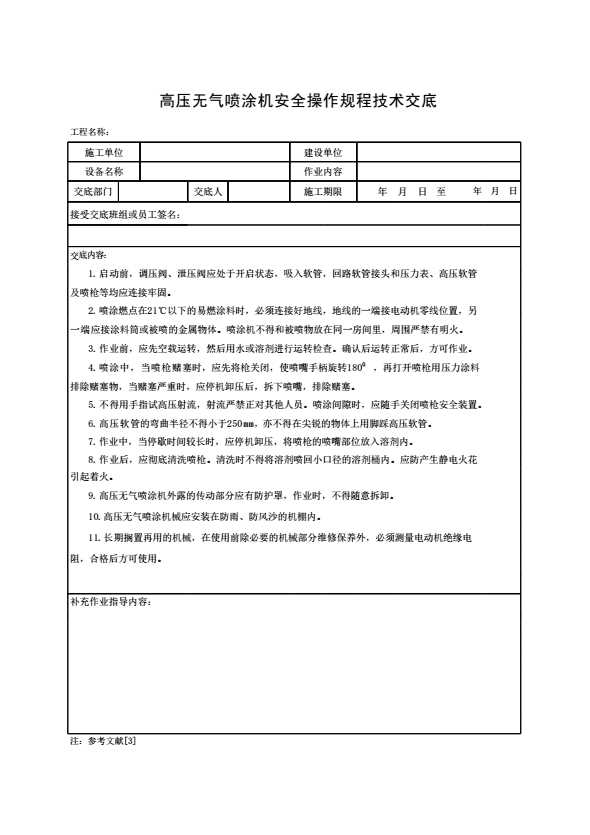 表格名称:高压无气喷涂机安全操作规程技术交底