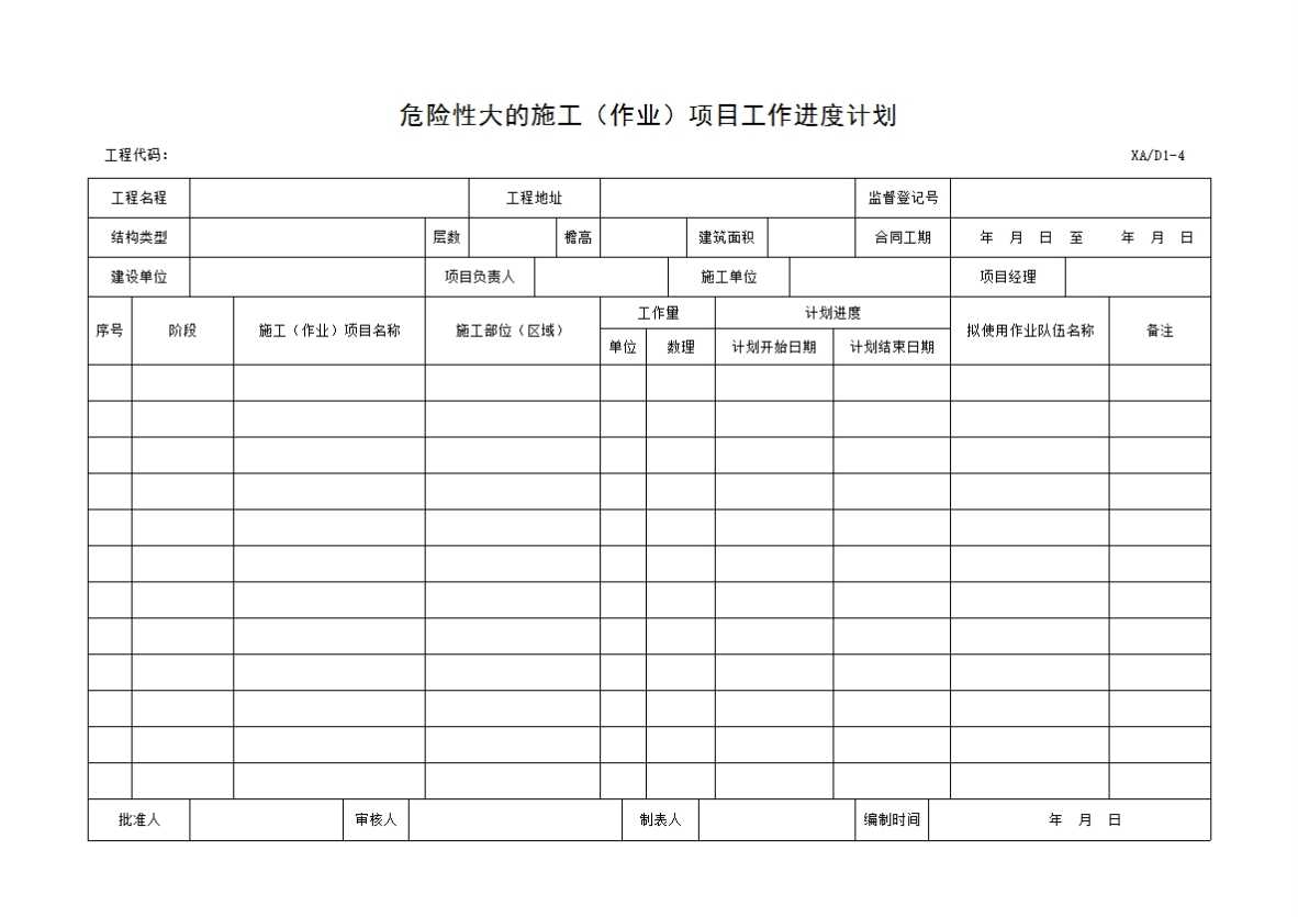 表格名称:XA/D1-4 危险性大的施工(作业)项目工作进度计划