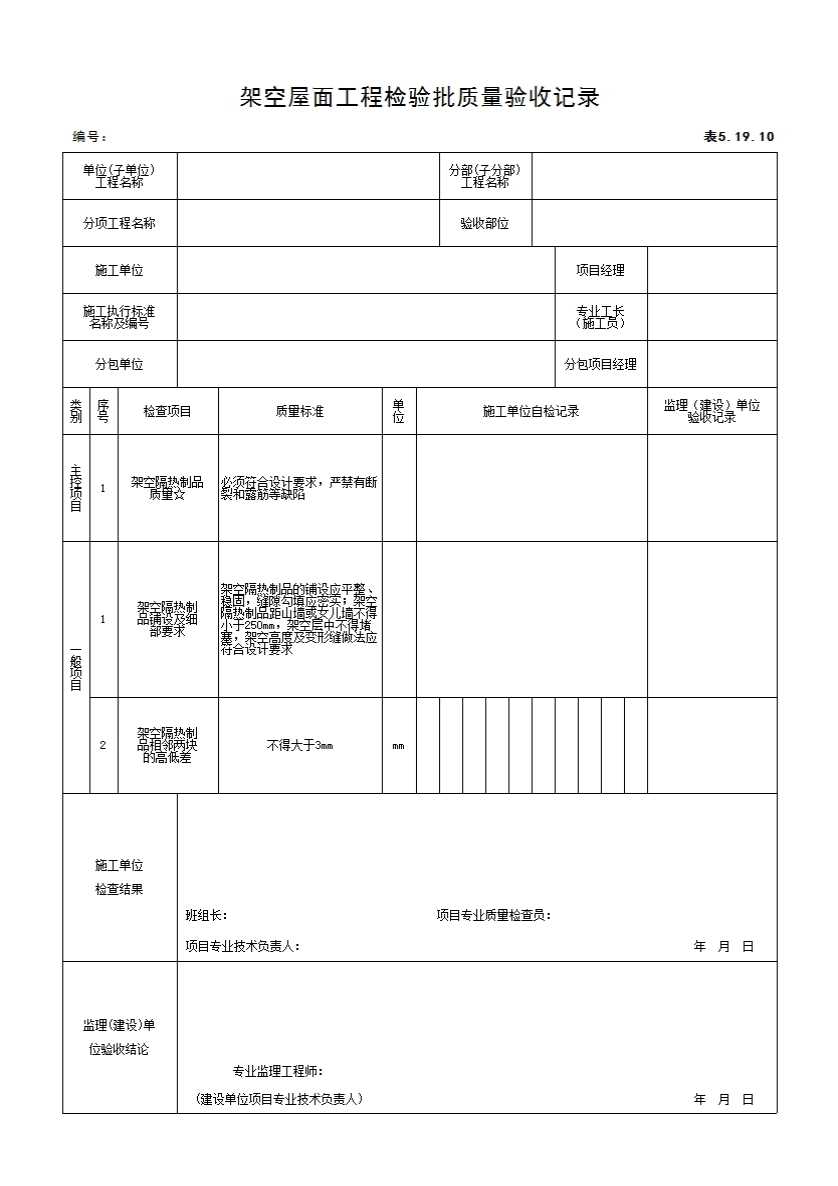 表格名称:5.19.10 架空屋面工程检验批质量验收记录