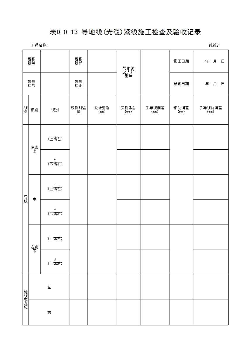 表D.0.13 导地线(光缆)紧线施工检查及验收记录