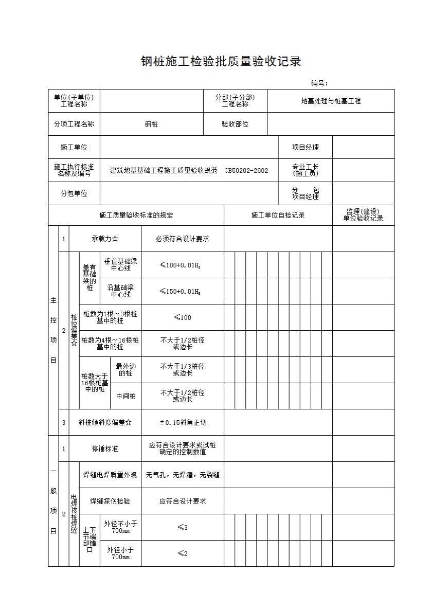 1) 电焊接桩焊缝应做 10%的焊缝探伤检查;