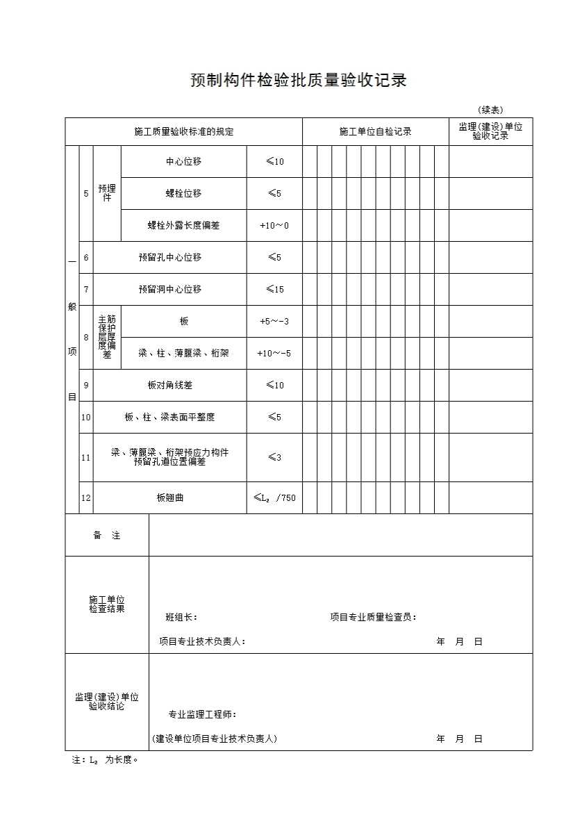 2) 其他一般项目: 同一工作班生产的同类型构件, 抽查 5%且不少于 3 件。