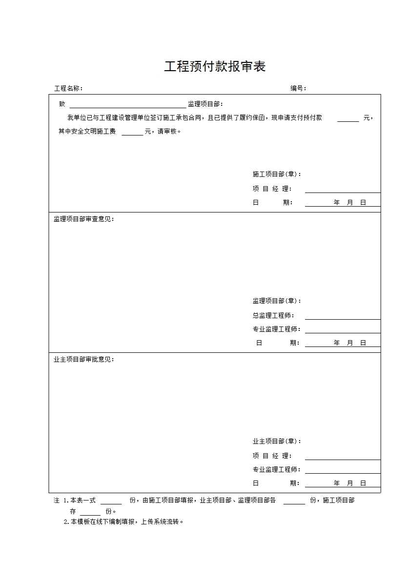 YZJ1 工程款报审表