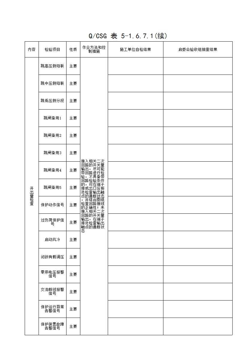 QCSG 表 5-1.6.7.1 220kV_____主变间隔 主一保护装置通用项目检查记录表