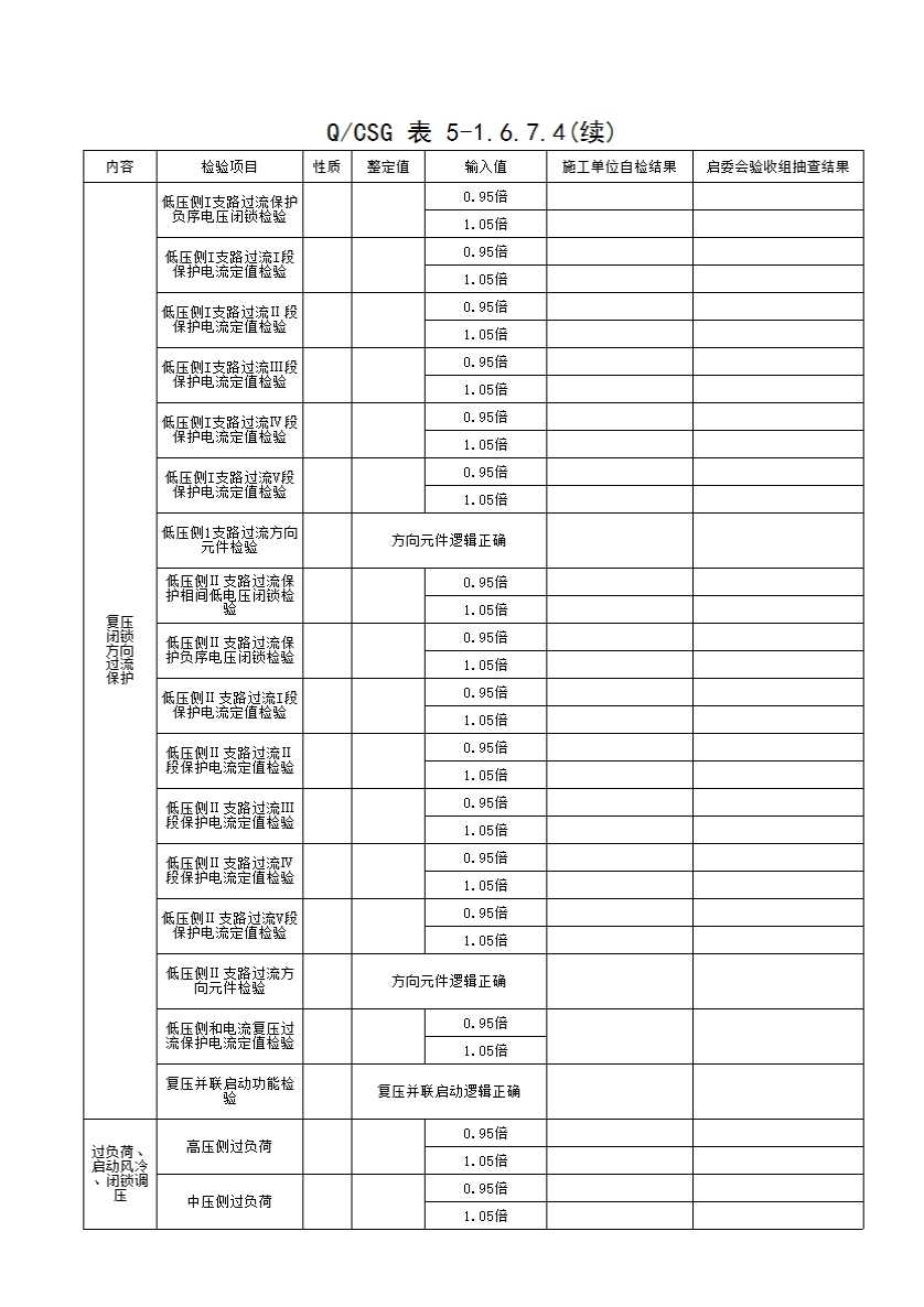 表格名称:QCSG 表 5-1.6.7.4 220kV_____主变间隔 主二保护装置功能检查记录表