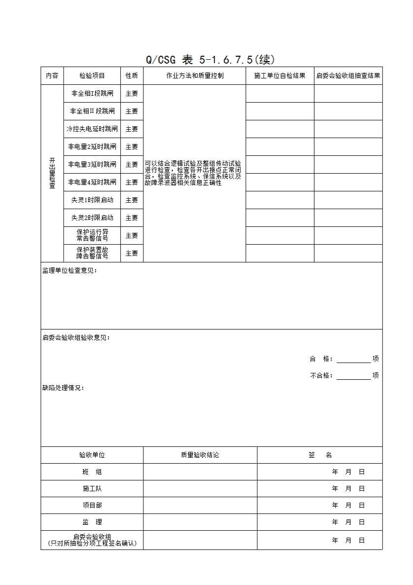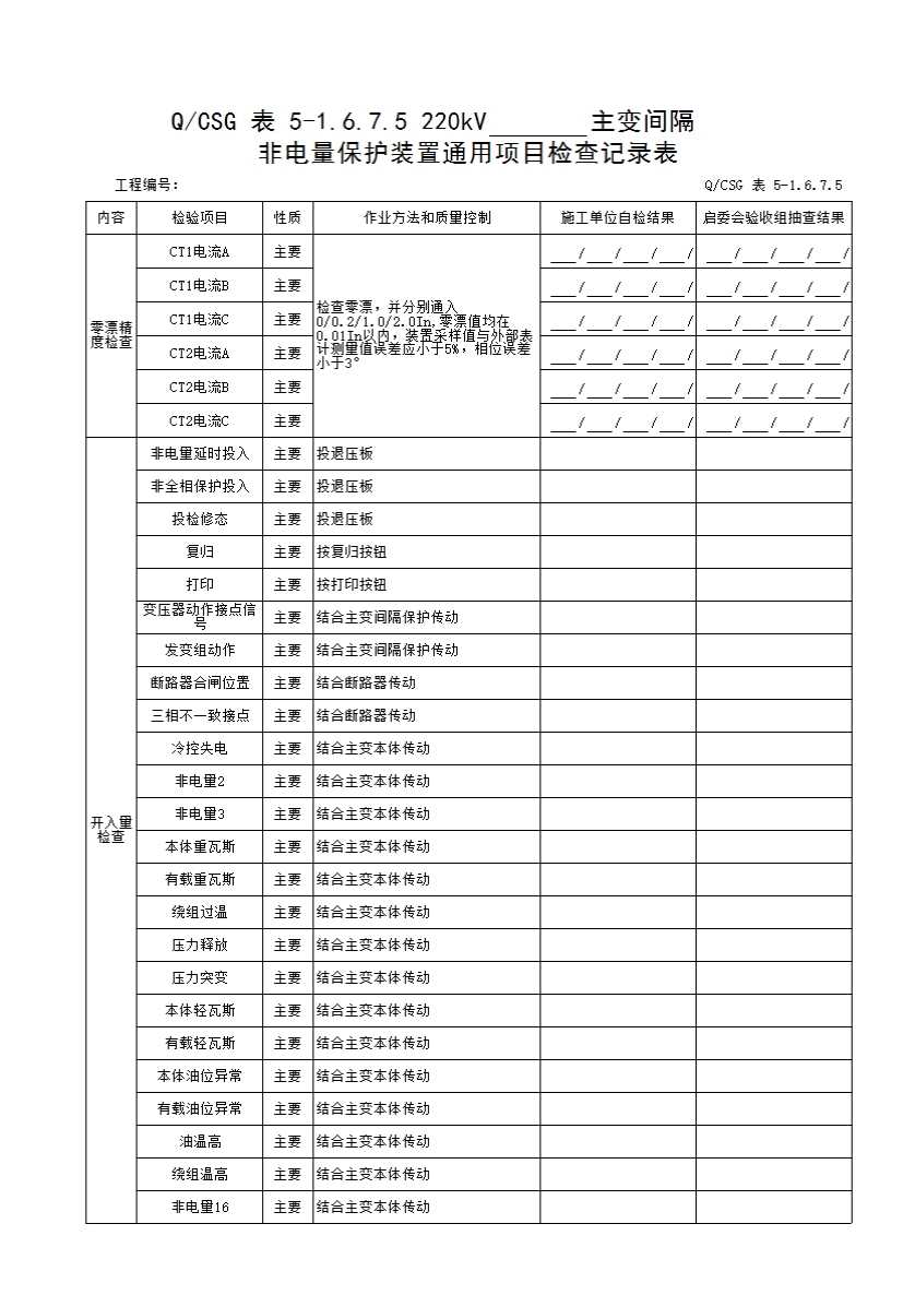 QCSG 表 5-1.6.7.5 220kV_____主变间隔 非电量保护装置通用项目检查记录表