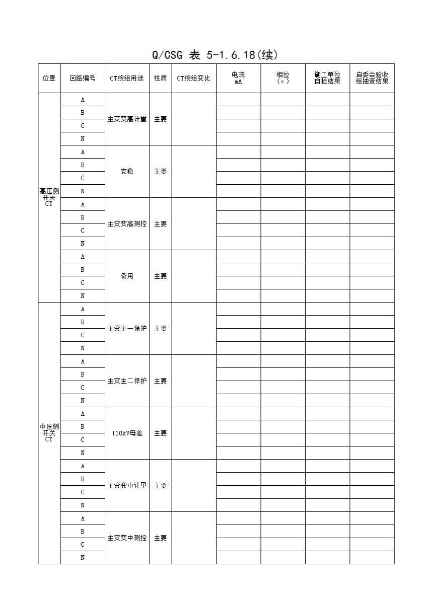 QCSG 表 5-1.6.18 220kV_____主变间隔 带负荷测试 分项工程质量验收记录表