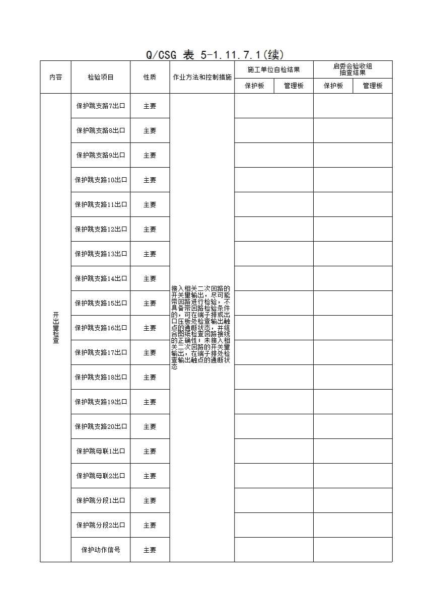 表格名称:QCSG 表 5-1.11.7.1 110kV______母差保护装置通用项目检查