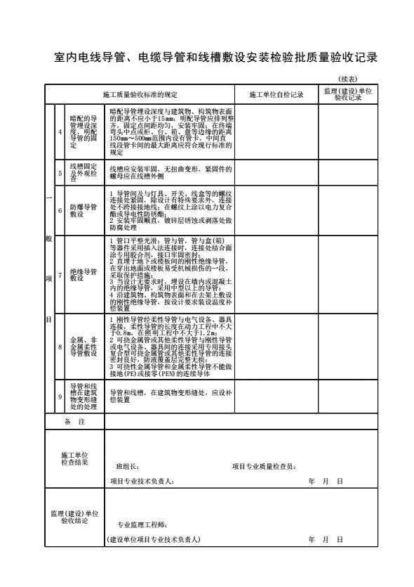 表格名称:室内电线导管、电缆导管和线槽敷设安装检验批质量验收记录