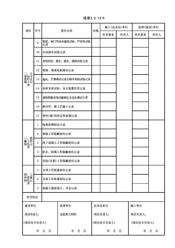 表格名称:[001]-表3.0.12-5 单位(子单位)工程质量控制资料核查记录