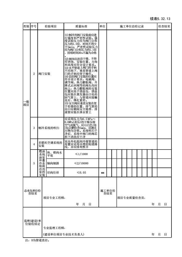 表格名称:表5.32.13 空调制冷机组及系统安装(制冷剂管道系统)检验批质量验收记录