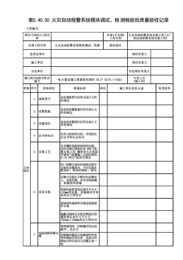 表格名称:表5.40.50 火灾自动报警系统模块调试、检测检验批质量验收记录