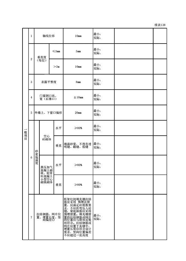 表格名称:070302020501 填充墙砌体检验批质量验收记录
