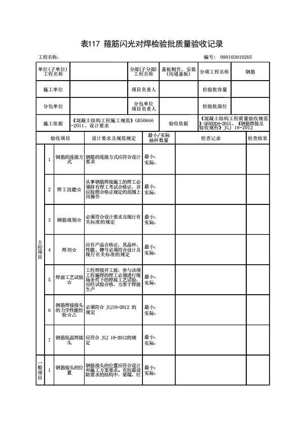 表格名称:090103010205 箍筋闪光对焊检验批质量验收记录