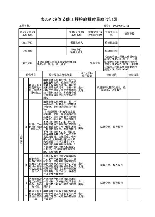 表格名称:100109010101 墙体节能工程检验批质量验收记录