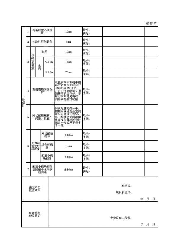 表格名称:100202020401 配筋砌体检验批质量验收记录