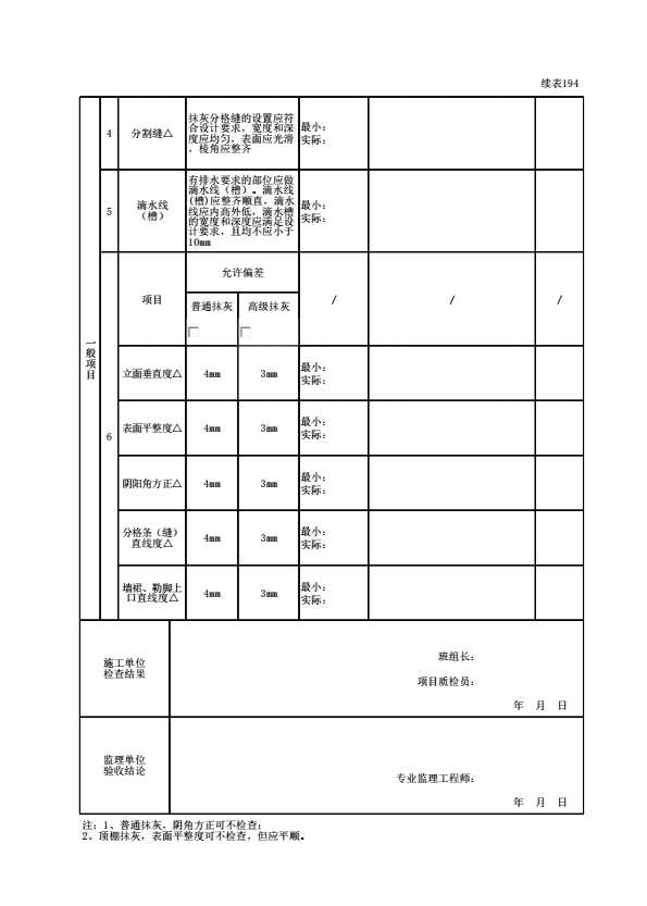 表格名称:110103020101 一般抹灰工程检验批质量验收记录