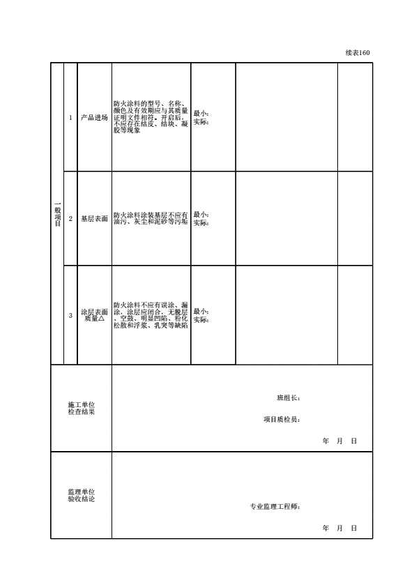 表格名称:150202030802 防火涂料涂装检验批质量验收记录