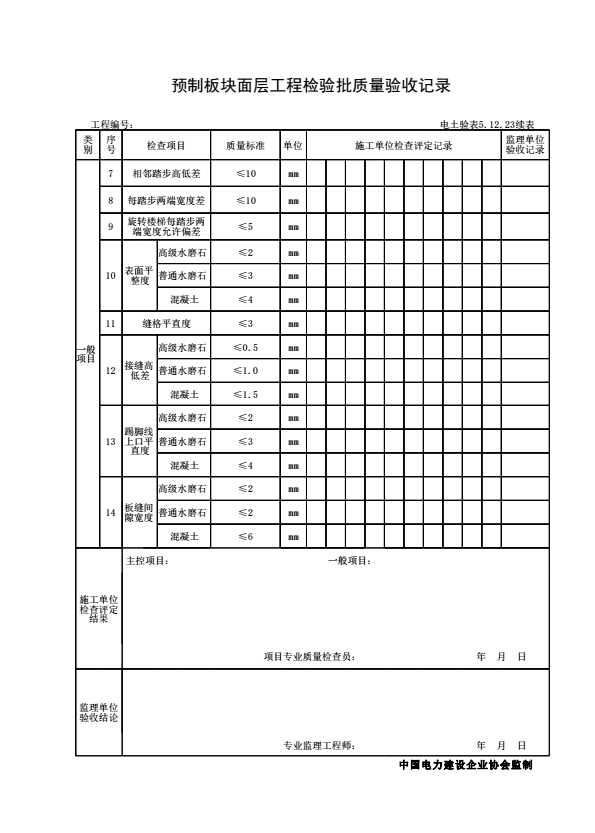 表格名称:电土验表5.12.23 预制板块面层工程检验批质量验收记录