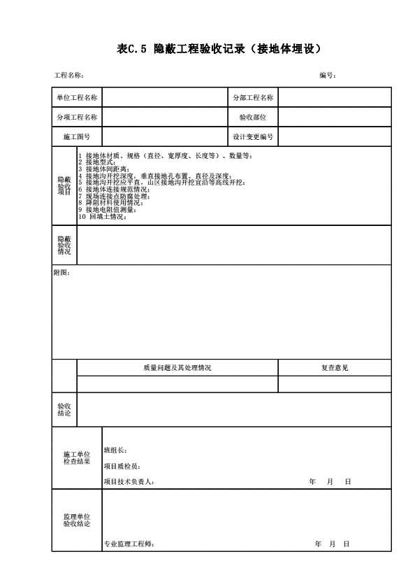 表格名称:表C.5 隐蔽工程验收记录(接地体埋设)