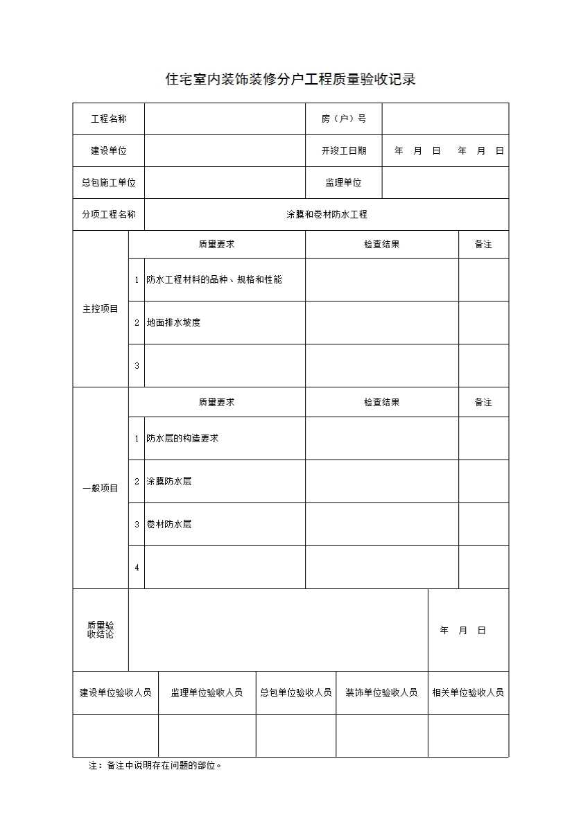 表格名称:涂抹和卷材防水工程质量验收记录