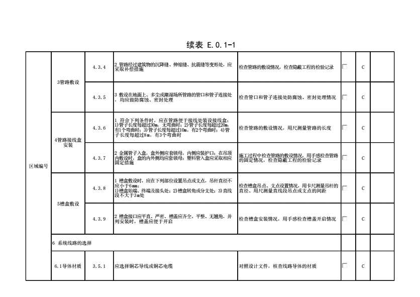 表E.0.1-1 文件资料、系统形式选择、系统线路设计、布线工程检测和验收记录