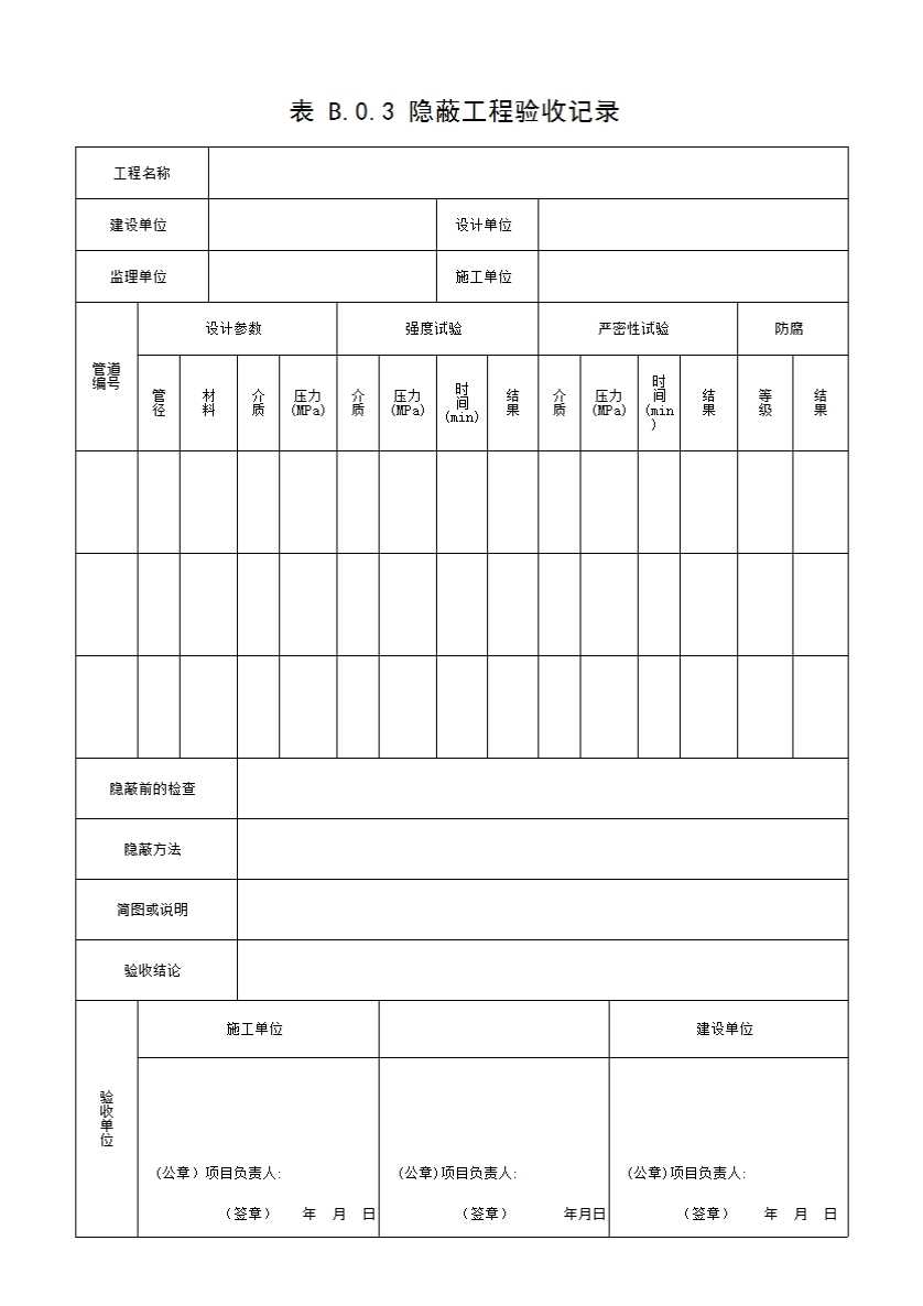表格名称:表 B.0.3 隐蔽工程验收记录