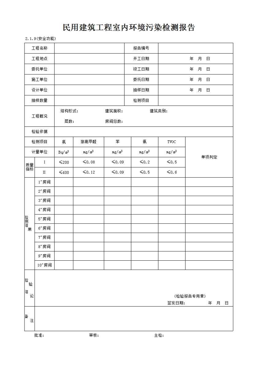 表格名称:2.1.9 民用建筑工程室内环境污染检测报告