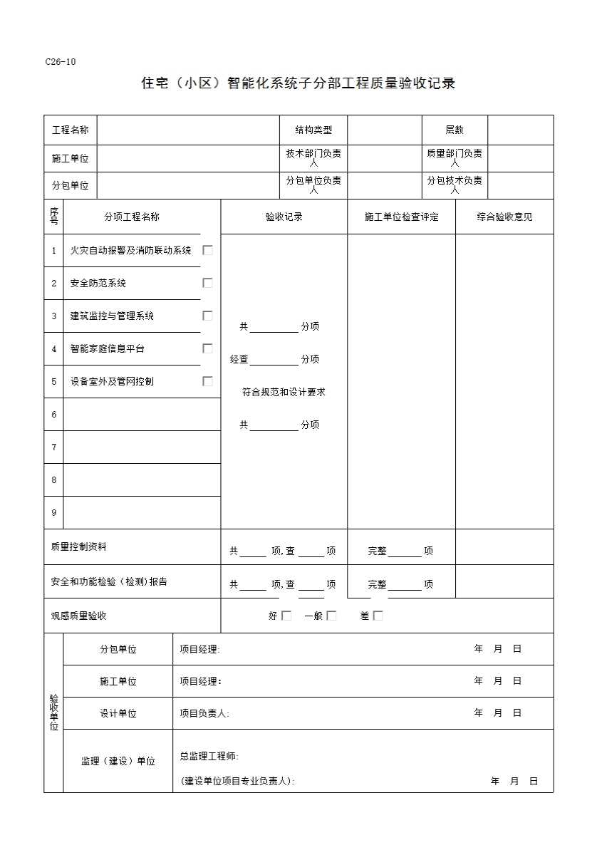 表格名称:C26-10住宅(小区)智能化系统子分部工程质量验收记录