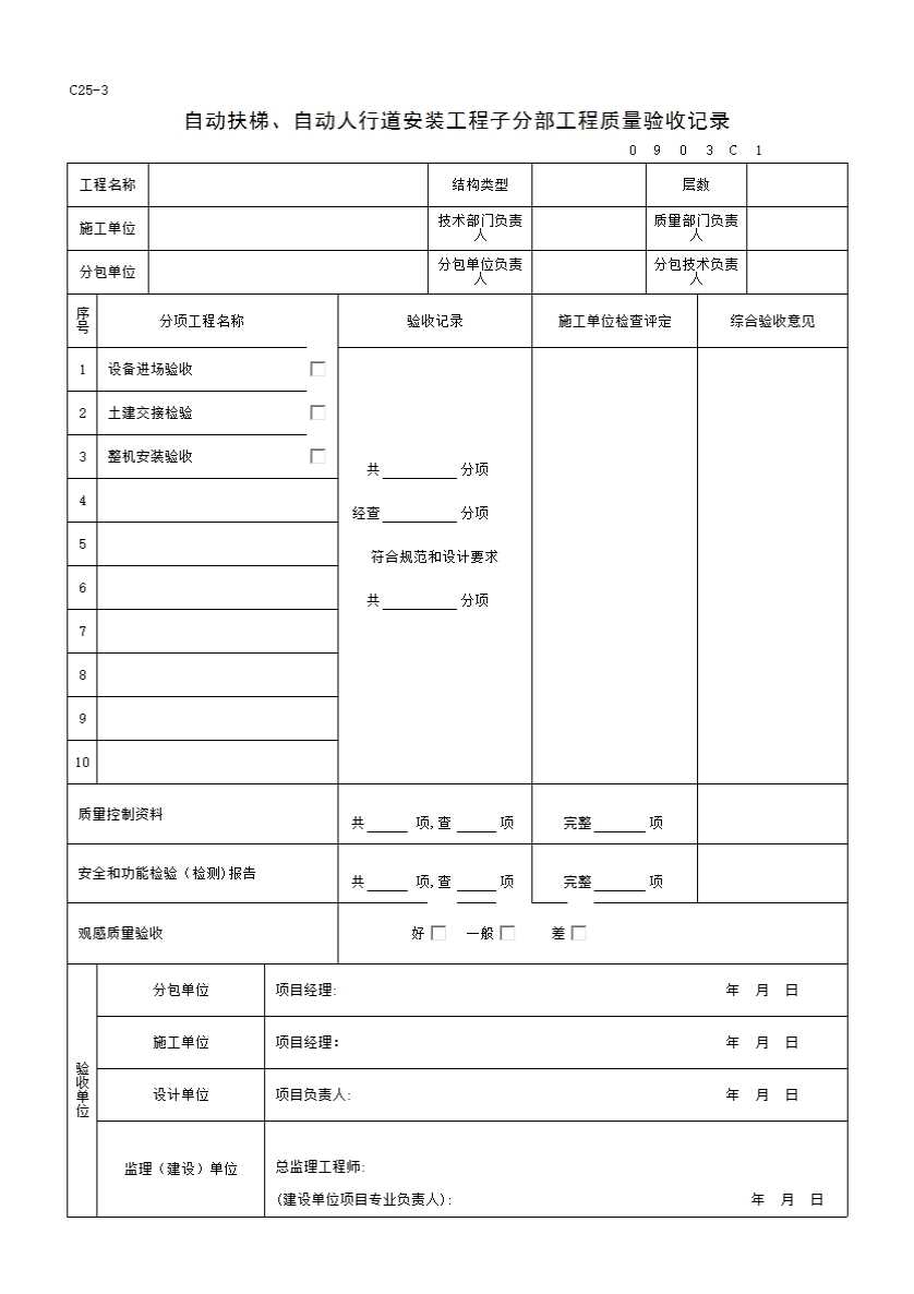 表格名称:C25-3自动扶梯、自动人行道安装工程子分部工程质量验收记录