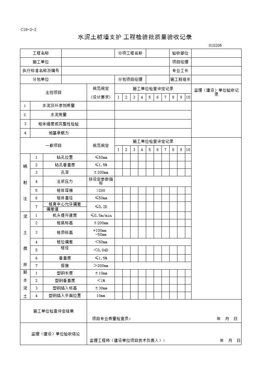 表格名称:C18-2-2水泥土桩墙支护工程检验批质量验收记录