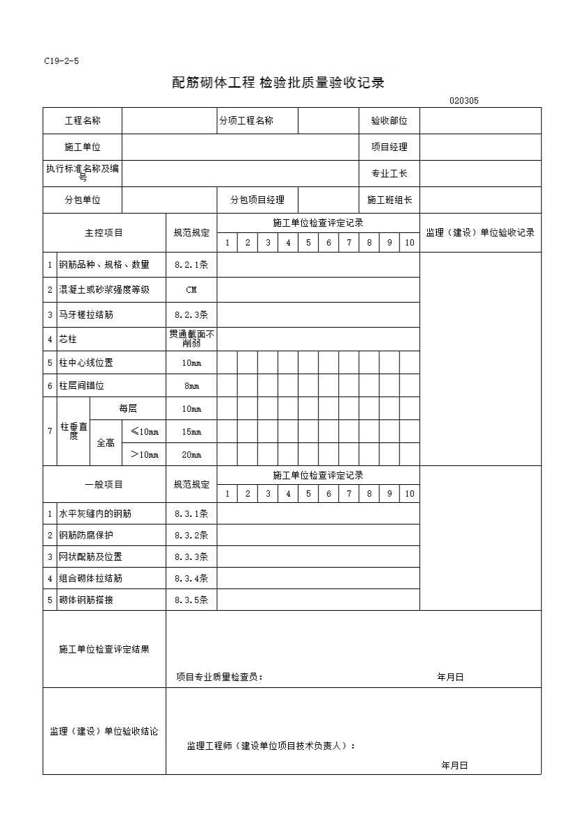 表格名称:C19-2-5配筋砌体工程检验批质量验收记录