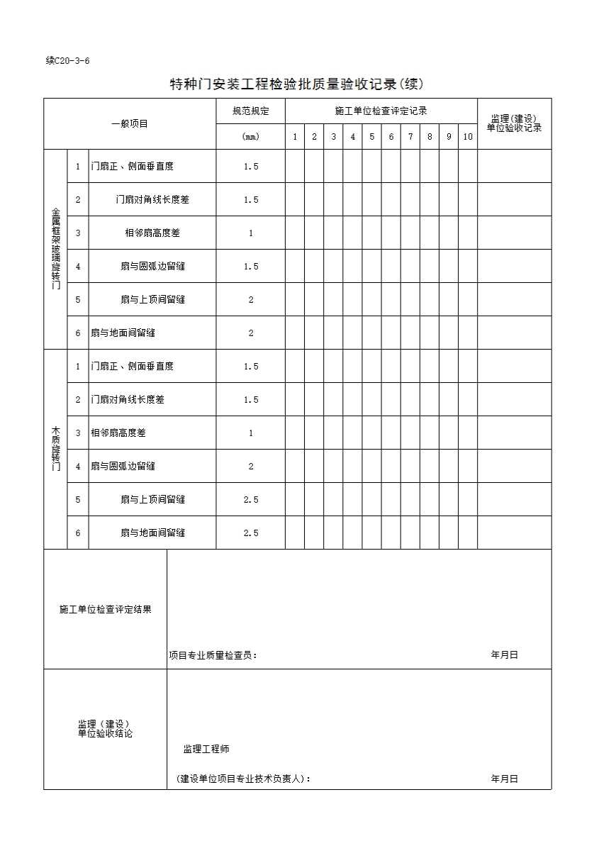 表格名称:C20-3-6特种门安装工程检验批质量验收记录