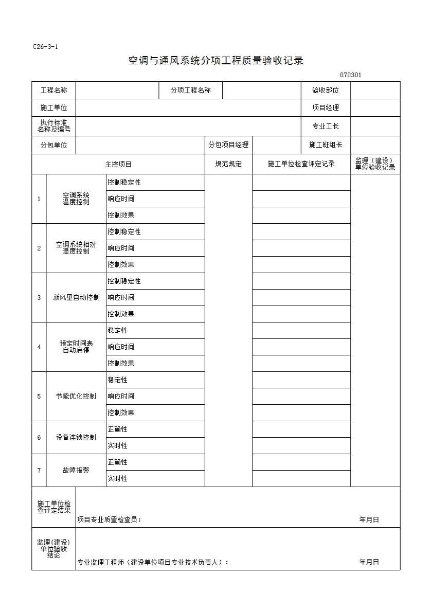 表格名称:C26-3-1空调与通风系统分项工程质量验收记录